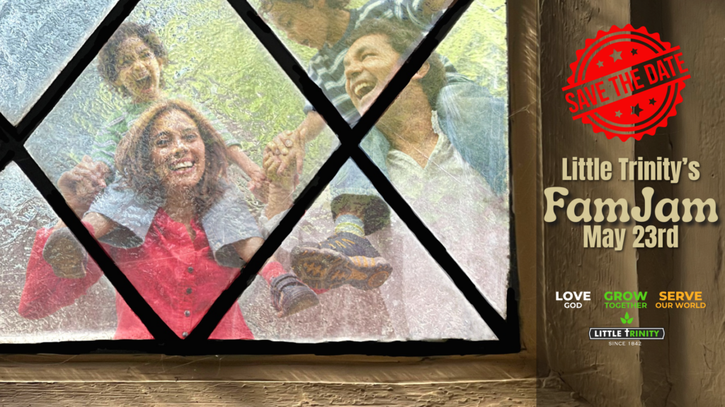 NEW! Little T FamJam, Sat, May 23, Little Trinity Church – Join us for a day of fun and community on Sat, May 23. This is open to families with kids of all ages, and will be a time for kids to grow and play, youth to serve and connect, and parents to be fed and supported. Mark your calendars! More info will be coming soon. Save the date for the Little T FamJam!!