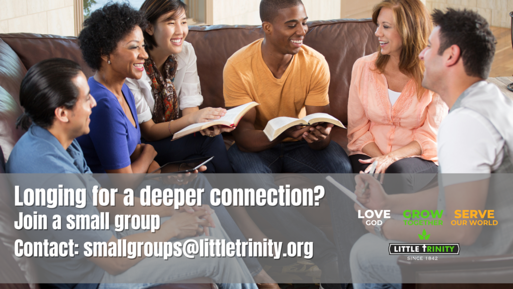 There are a number of us who are looking for ways to deepen our life of faith, to know Jesus better. A good way to do that is through our small groups. Small groups are an important part of life at Little T because, among other things:
