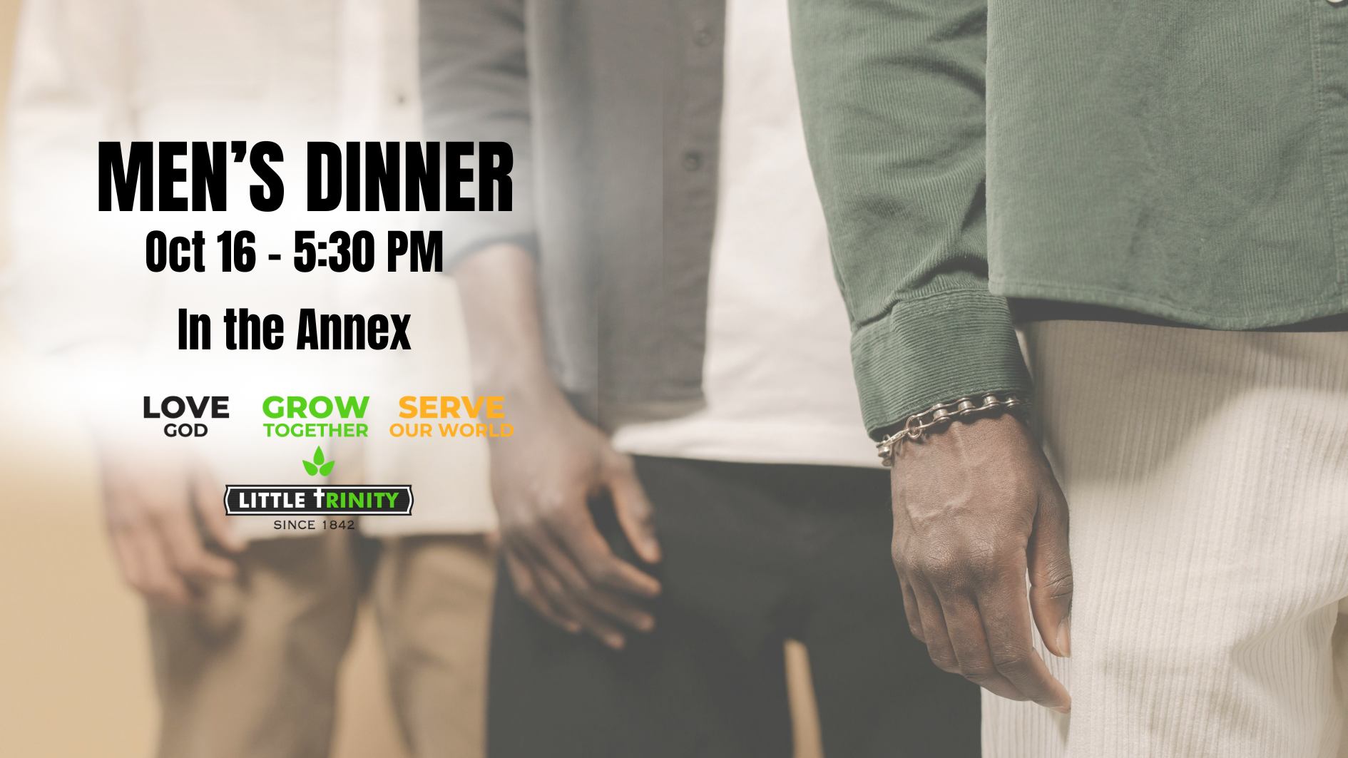 Thu, Oct 16, 5:30pm, 5:30-8pm – As the season changes and life picks up pace after Thanksgiving, this is the perfect moment to share a meal and reconnect. Join us for the next Men’s Dinner on Thu, October 16, in the Upper Annex. These evenings are more than just dinner—they’re an open space for real conversation and connection among men from Little Trinity. Whether you’re a longtime member or new to the church, you’ll find good food, genuine fellowship, and a warm welcome.