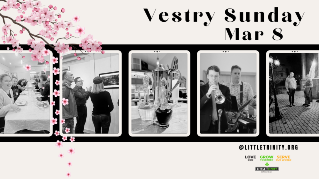 Sun, Mar 8, 12:30pm, Little T Sanctuary – Plan to join us at 12:30pm on Sunday, March 8 for the annual Vestry meeting (Little Trinity’s annual general meeting). The Vestry […]