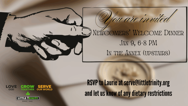 Thu, Jan 8, 6pm, If you’ve recently joined our church community and have not been to a previous newcomers’ dinner, you are invited to our next Newcomers’ Welcome Dinner for […]