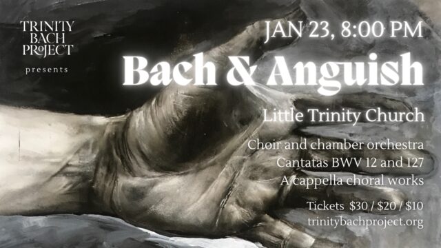 Fri, Jan 23, Little Trinity Church, 8pm – Bach & Anguish: In this one-hour program, fourteen singers and a chamber orchestra of strings and winds pair the lament of Bach’s […]