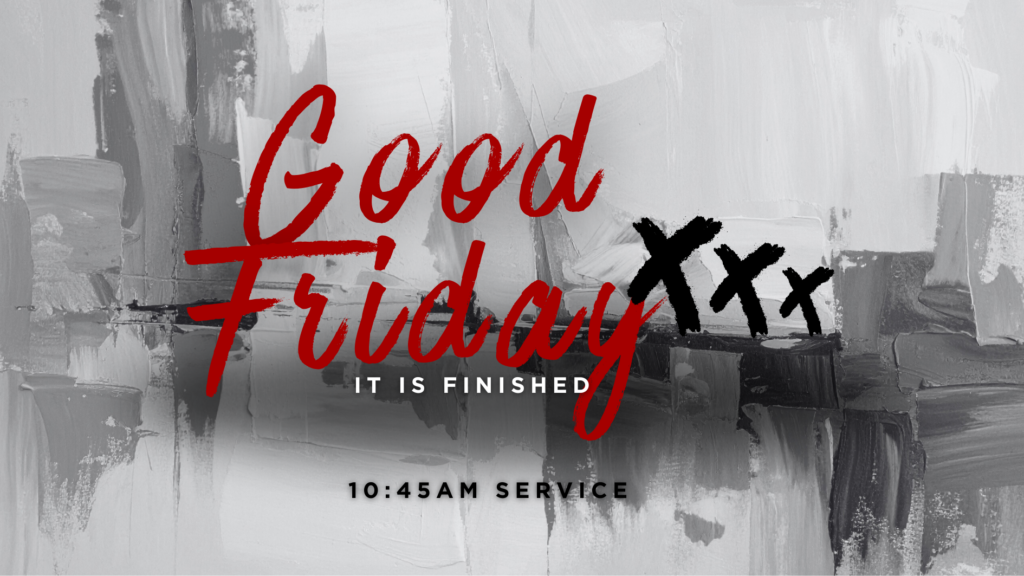 Good Friday Service, 10:45am – Join us for our Good Friday service – where we take time to remember the passion of Christ. The service includes special music and a dramatic reading. Click on the button below to watch our service live. Good Friday Bulletin