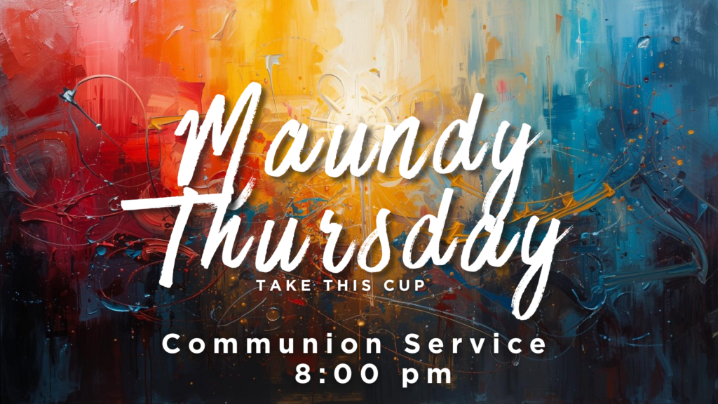 Maundy Thursday Service, 8pm – Join us for our Maundy Thursday as we remember the evening of the last supper with Jesus – an intimate and meaningful service. Click on the button below to watch our service live. Maundy Thursday Service Bulletin